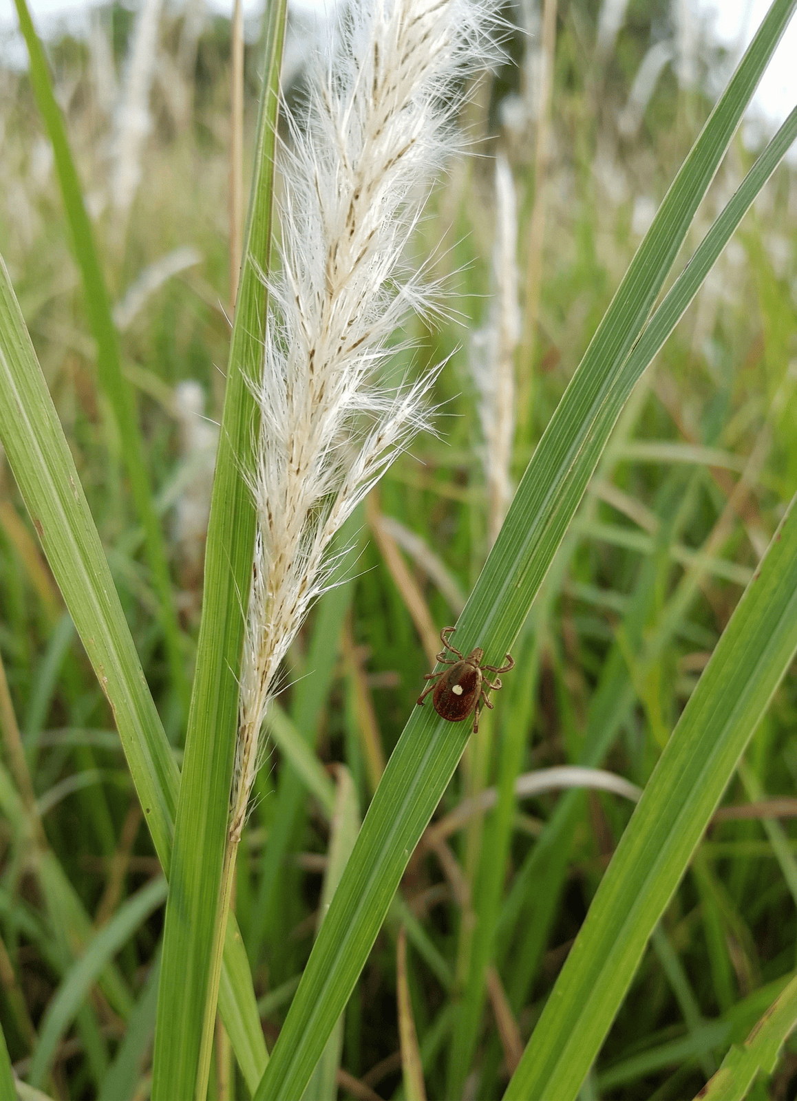 Pesquizas demuestran que el pasto cogón Imperata cylindrica favorece la supervivencia de la garrapata de la estrella solitaria Amblyomma americanum.